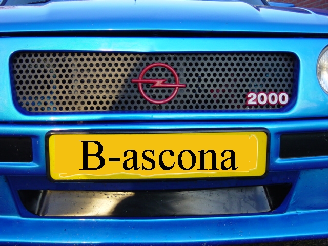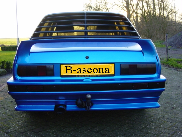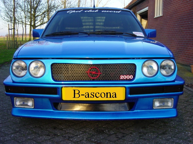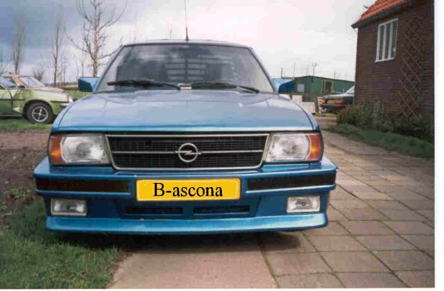 Deze ascona is mijn tweede OPEL die ik heb gekocht, mijn eerste was een A-ascona die na 4 jaar trouwe dienst werd vervangen door bovenstaande. Toen ik hem kocht was het een standaard berlina uitvoering met een vinyl dak. Ik ben toen begonnen om hem wat sportiever te maken, door er spoilers op te zetten. Deze spoilers heb ik zelf gemaakt, want ik was niet tevreden over het aanbod van het standaard spul. Dat heeft uiteindelijk bovenstaand (rechts) resultaat opgeleverd. Het snelle uiterlijk heeft ertoe geleid dat het innerlijke ook sneller moest om aan de uiterlijke verwachtingen te voldoen. Ik heb toen een oude 2.0 uit een vauxhall gehaald en die volledig gereviseerd en opgevoerd. Het resultaat is een kleine 130 pk! Dit werkt redelijk bij stoplichtsprintjes.
