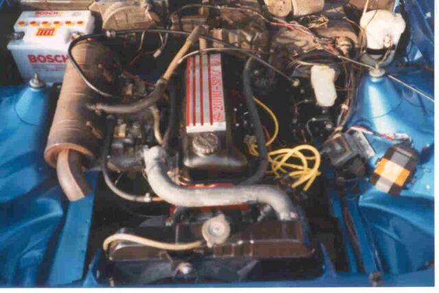 Hier links is nog met de originele koplampen en grill De spoiler is later ook nog gewijzigd ivm de koeling Verderop staan nog foto's van de volgende fase. |